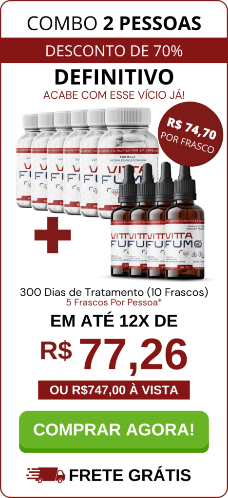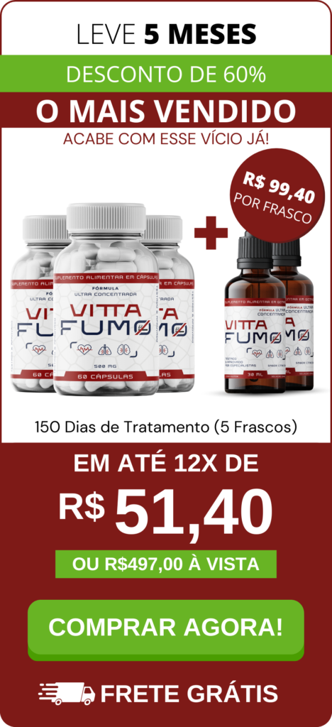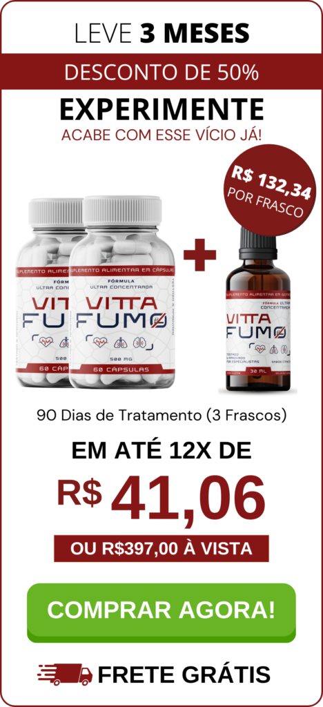 Uma das principais funções do Vitta Fumo é auxiliar na busca por uma vida livre do vício do cigarro. Foi desenvolvida para ajudar a preservar a saúde do sistema respiratório e reduzir os efeitos nocivos do tabagismo.
